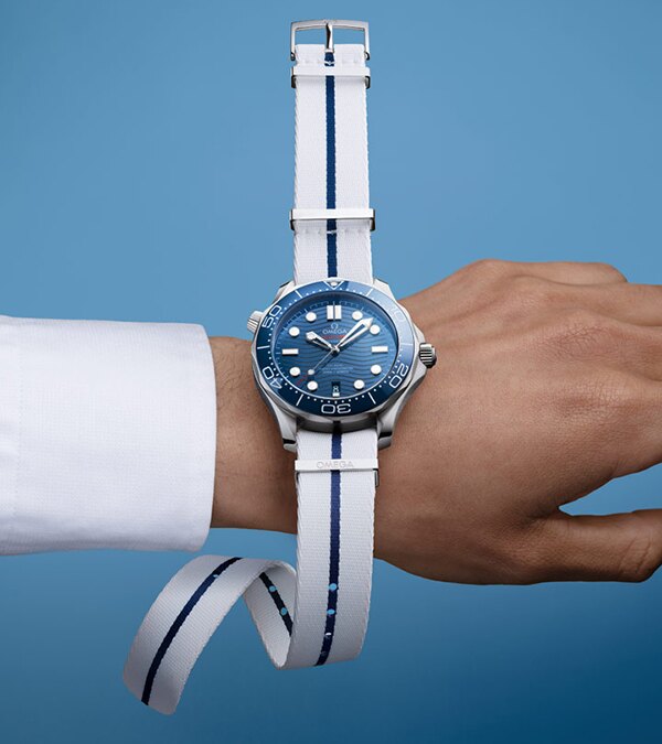 To celebrate oceangoing icon, OMEGA has produced a collection of watches with dials in various layers of Summer Blue. A striking tone reminiscent of a perfect day on a boundless sea.